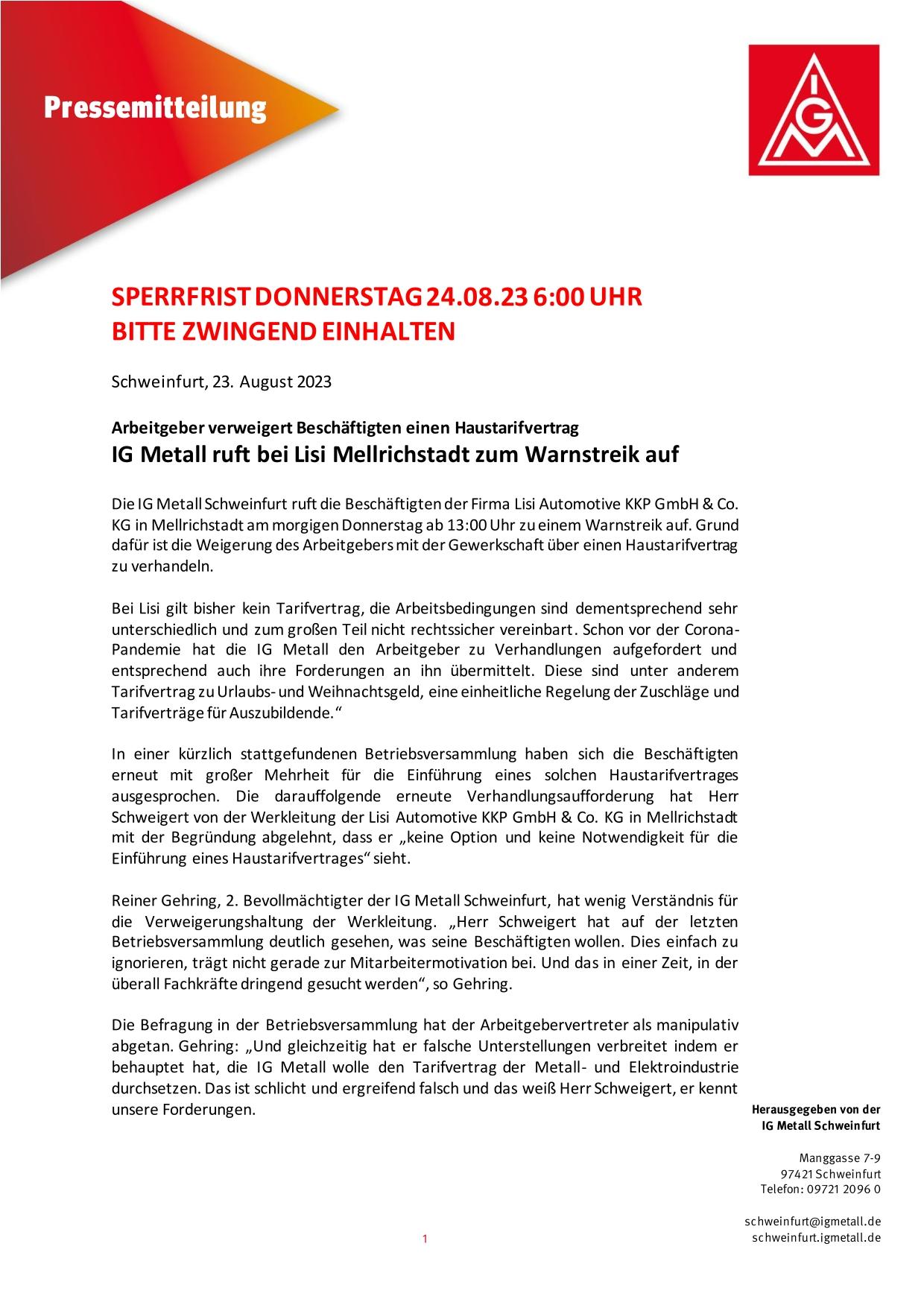 LISI Automotive KKP GmbH & Co. KG Mellrichstadt verweigert Beschäftigten einen Haustarifvertrag