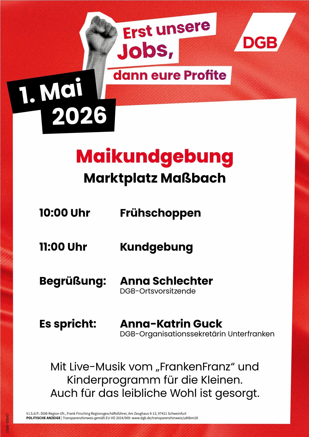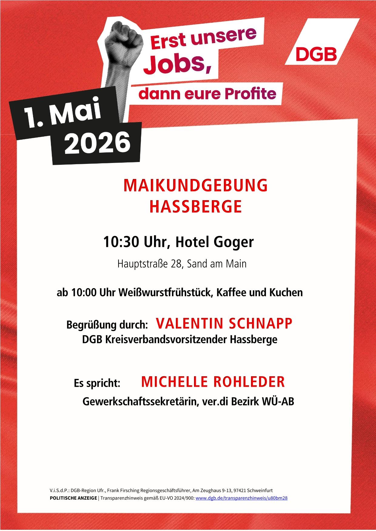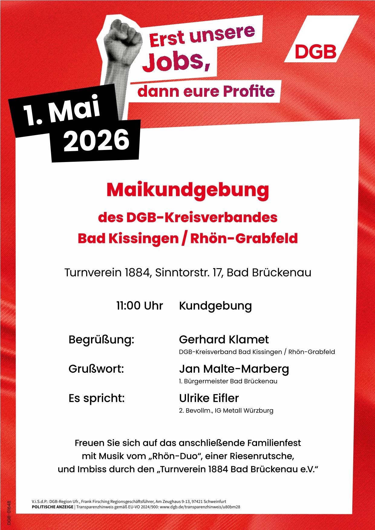 1. Mai 2026 "Erst unserer Jobs, dann eure Profite!"