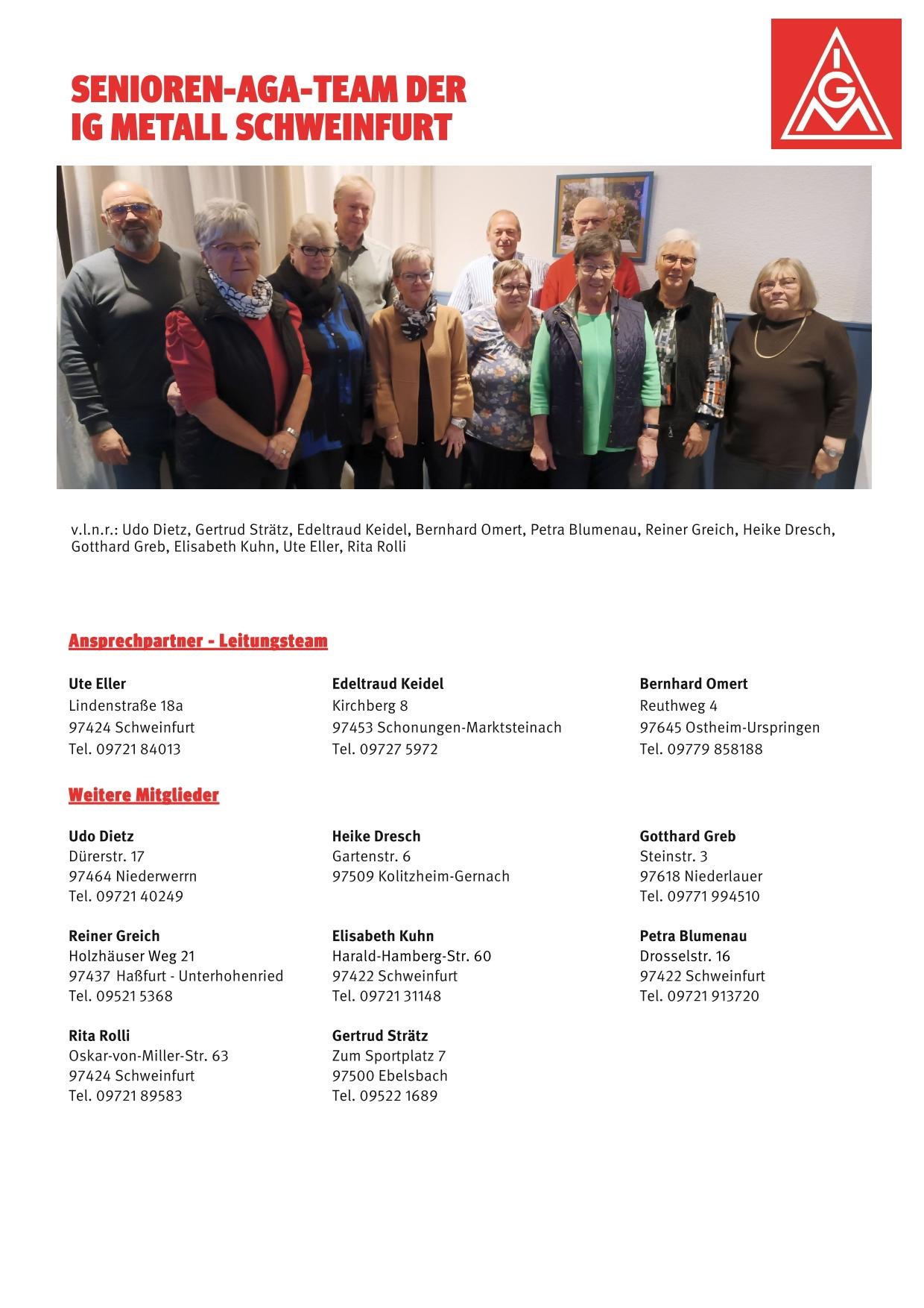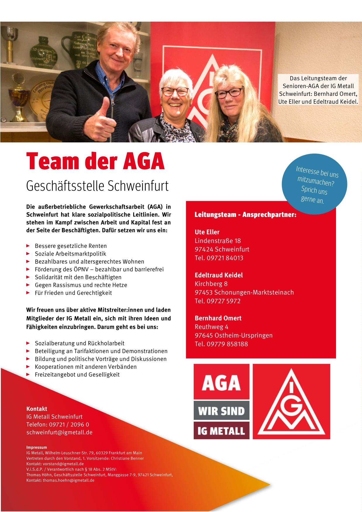 Auch 206 haben unsere Kolleginnen und Kollegen aus dem Senioren-AGA-Team Schweinfurt wieder ein attraktives und umfangreiches Angebot an Veranstaltungen und Freizeitaktivitätet zusammen gestellt. Viel Spaß beim Stöbern.